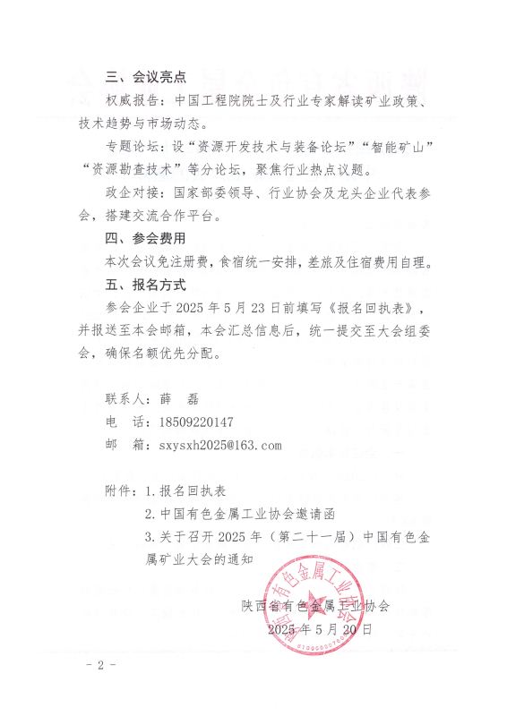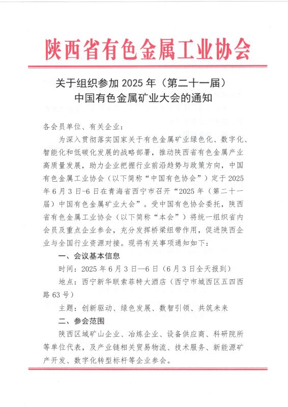 关于组织参加2025年(第二十一届)中国有色金属矿业大会的通知
